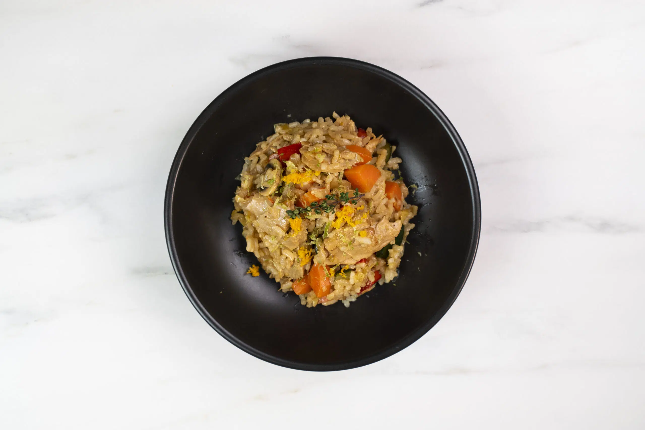 - Agregar el chick’n y el arroz, salteándolo todo junto un par de minutos.