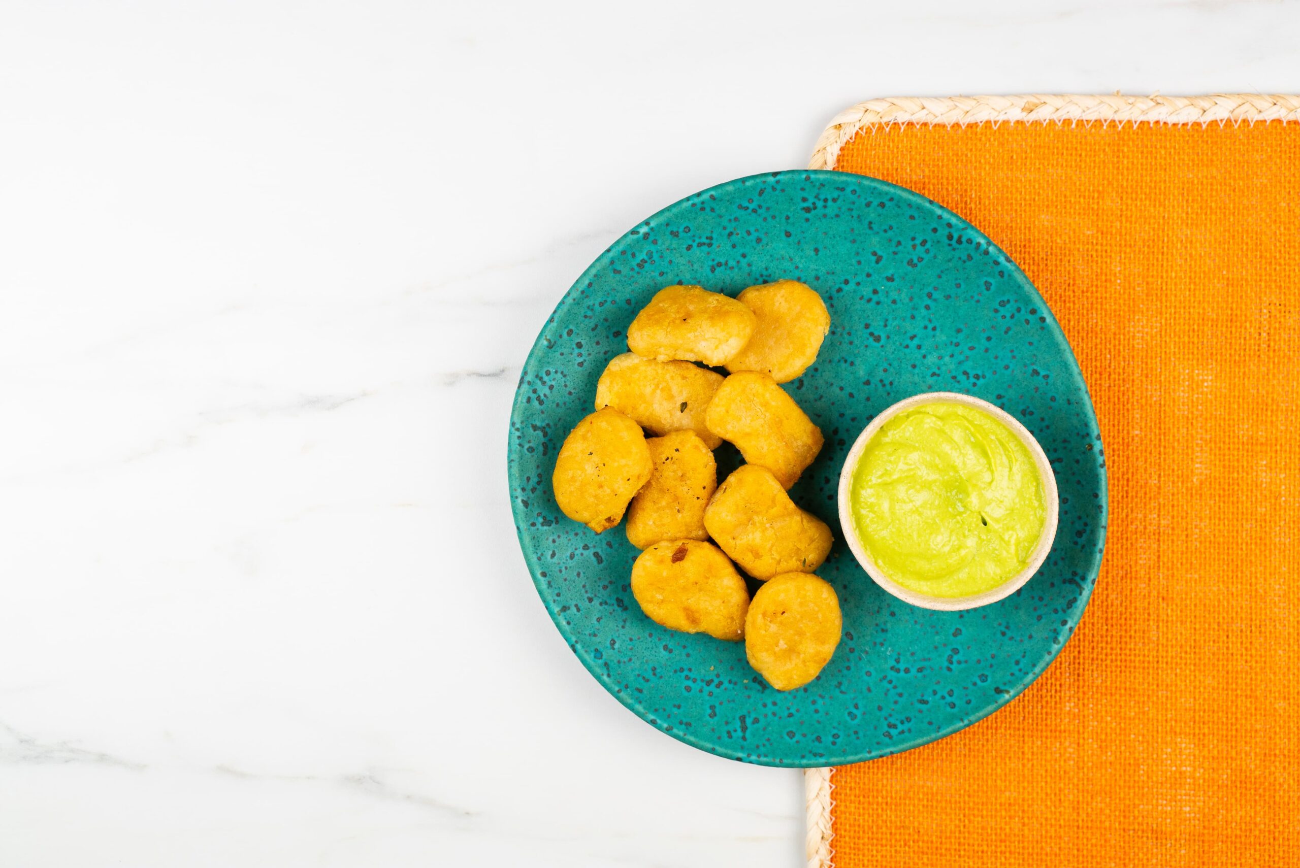 Quorn Crispy Nuggets con hummus de guisantes y aguacate